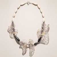 어른이 Adult childᅠ 목걸이 Necklaceᅠ 실리콘, 실, 금박, 플라스틱, 나무, 정은 silicone, thread, gold leaf, plastic, wood, sterling silverᅠ 790mm (전체길이 total length)ᅠ 2021